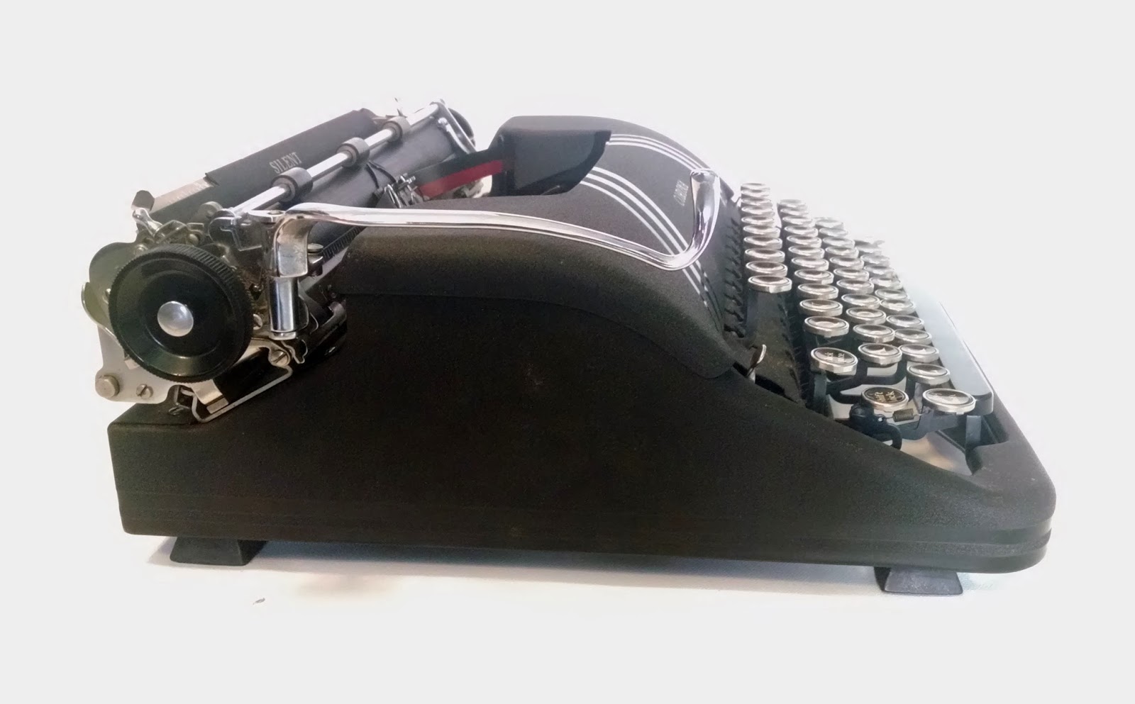 Alas, the only machine I was interested in was a Facit until I noticed that it had an AZERTY layout. I was in Canada's largest French speaking city after all. I passed on the Facit and the owner told me about an Olympia that he had out back. It was a wide carriage SM7 with the issue of the top three rows of keys not striking the platen. I told him that a common issue with Olympias was worn out bushings and sure enough, the rubber on this machine looked pretty crispy. I have not found this with my own Olympias so I am not sure if the bushings were the problem with this machine. I passed on this machine too. My patient wife and I moved on to Montreal's museum of fine art and a nice dinner out before we drove back home. This was my first typewriter safari in a big city which, I learned, brought big city prices!